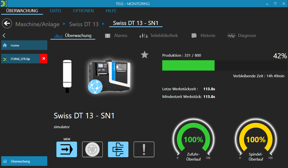 - Werkstückzähler, Produktionsrestzeit und Werkstückbezeichnung