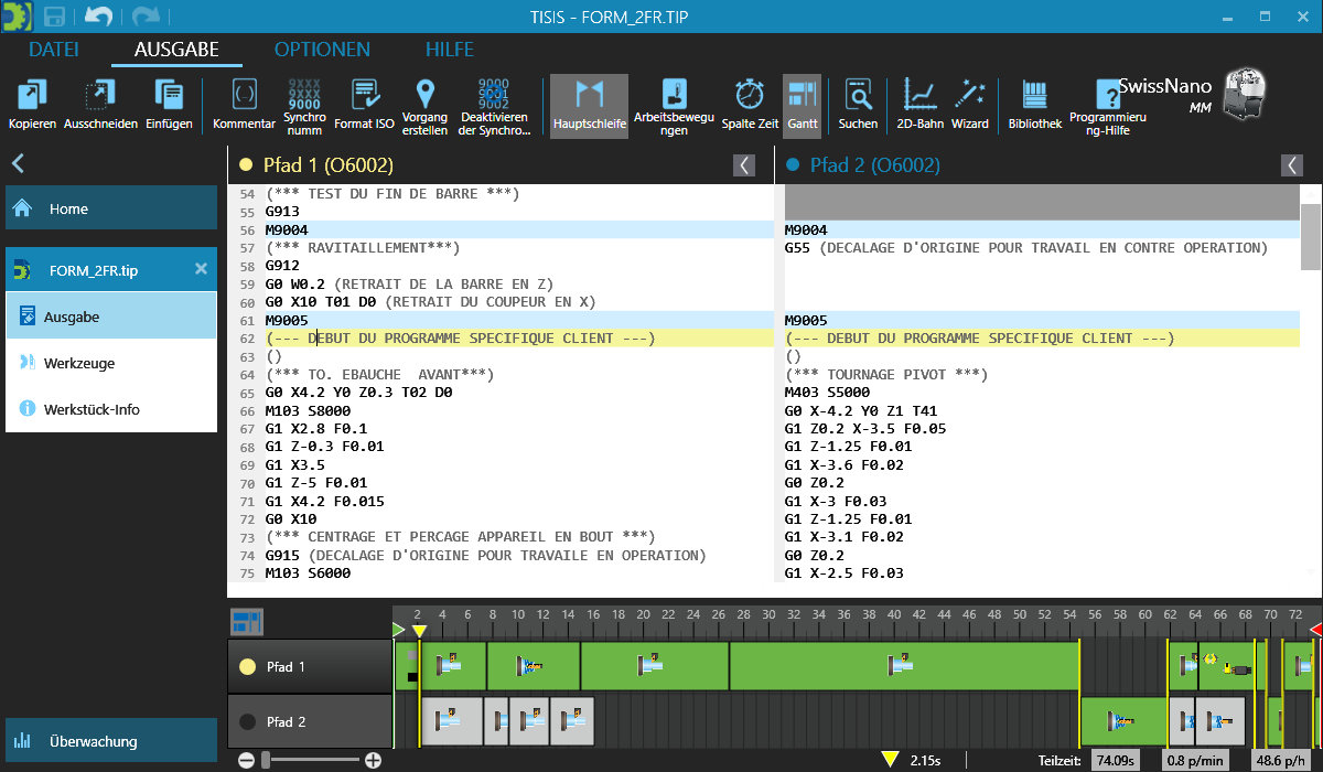 - Direkte Bearbeitung des Programms im Gantt-Diagramm