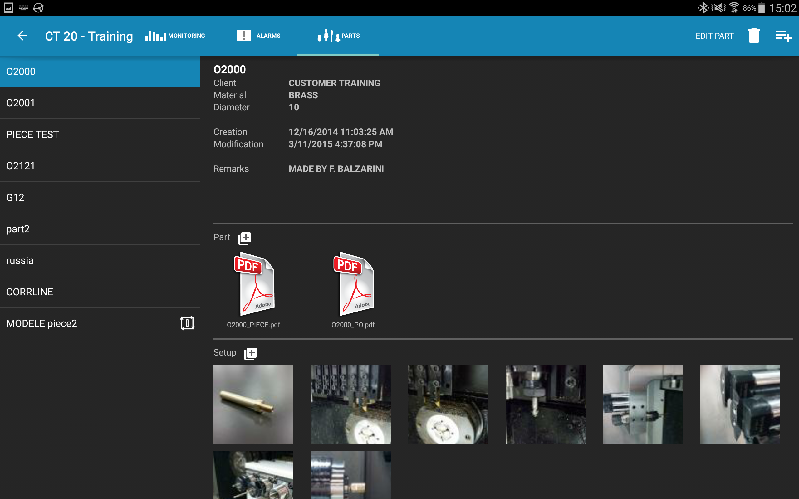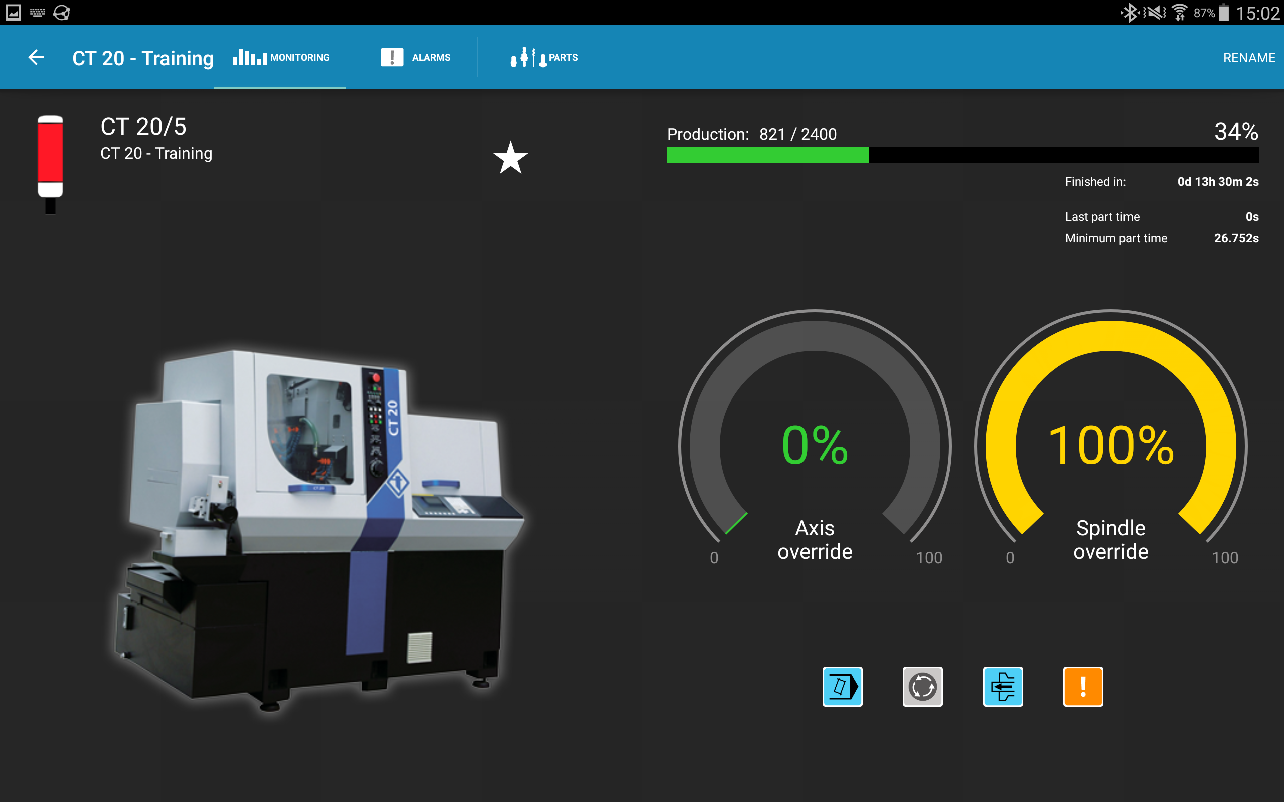 TISIS Tab permet de surveiller de manière détaillée le parc machine depuis une tablette ou un smartphone Android. Le monitoring inclut non seulement le statut des machines de l’atelier mais également, la vue de production en cours, soit le compteur de pièces, le temps de production restant ou encore une librairie d’informations pièces incluant des documents images ou PDF.