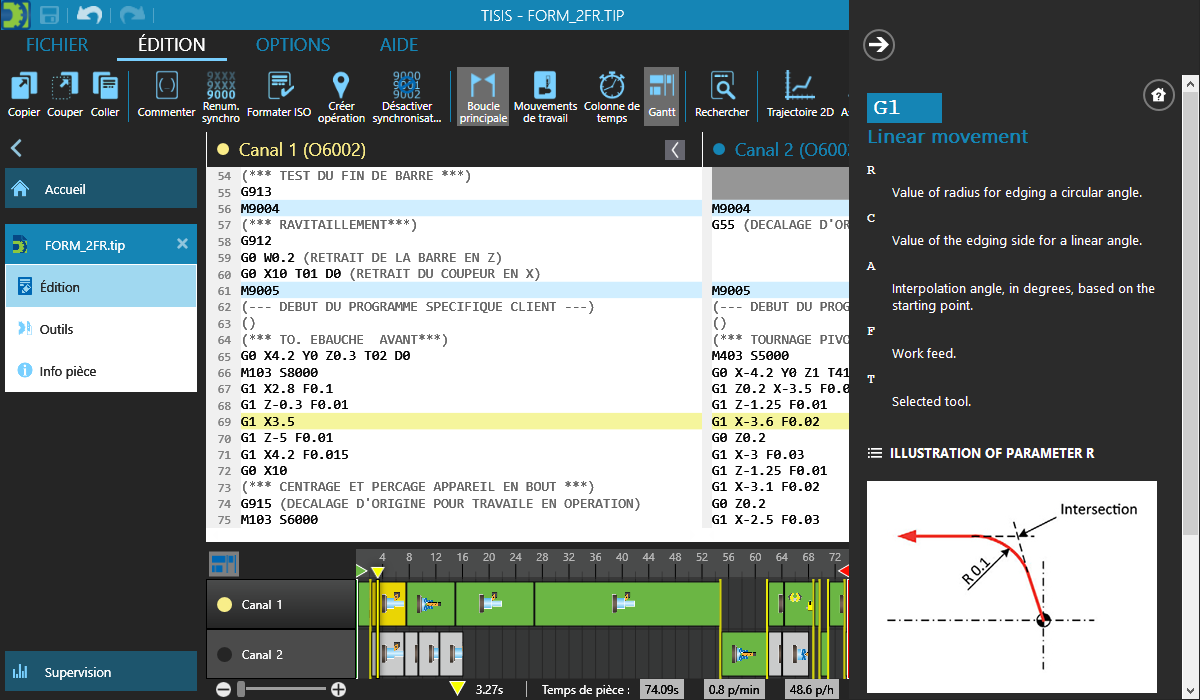 - Editeur de codes ISO vertical avec coloration syntaxique